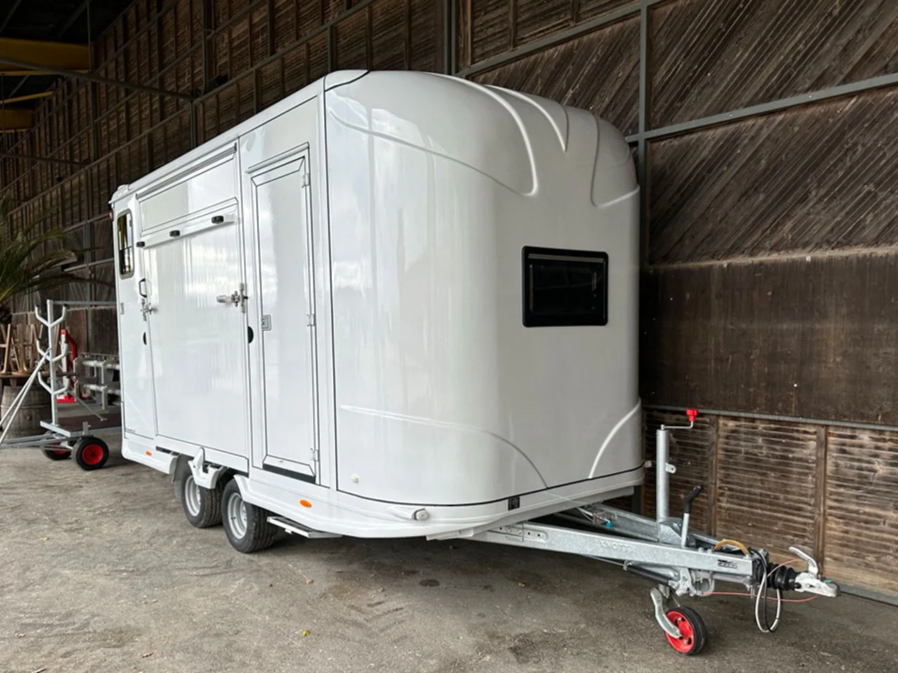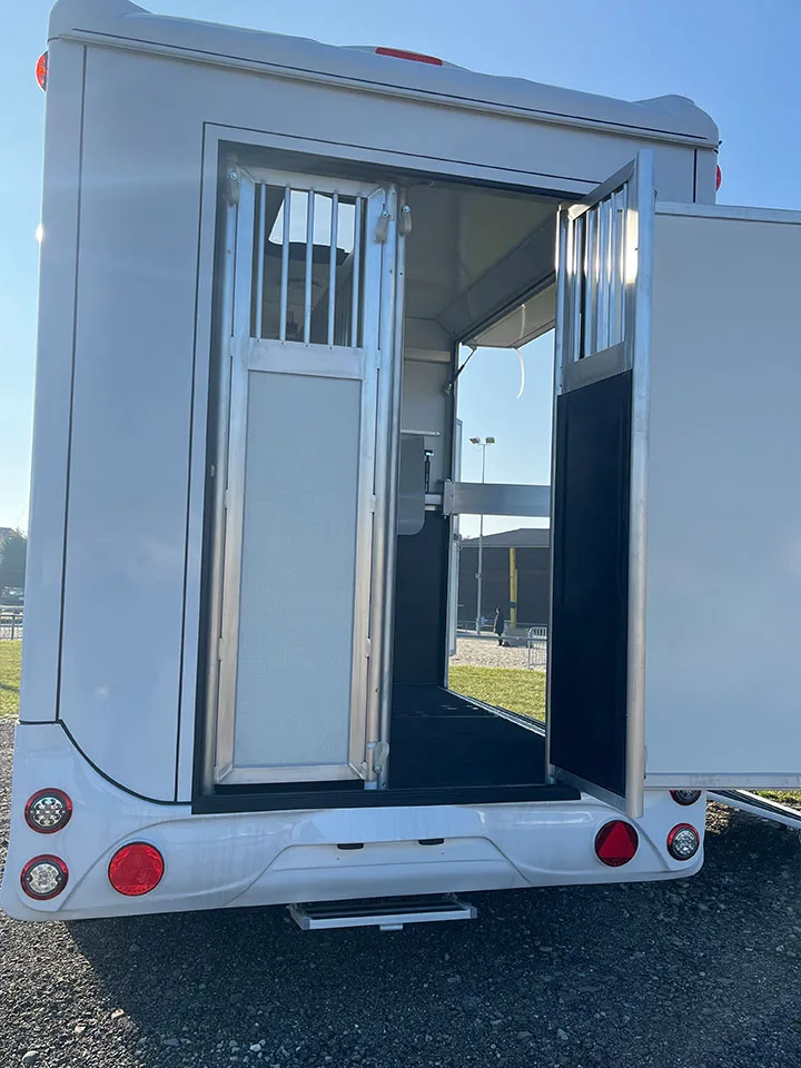 Komfortabler Pferdeanhänger für 2 Pferde. Dank der Hengstausführung ideal auch für den Transport von Hengsten. Grosse Material- und Sattelkammer